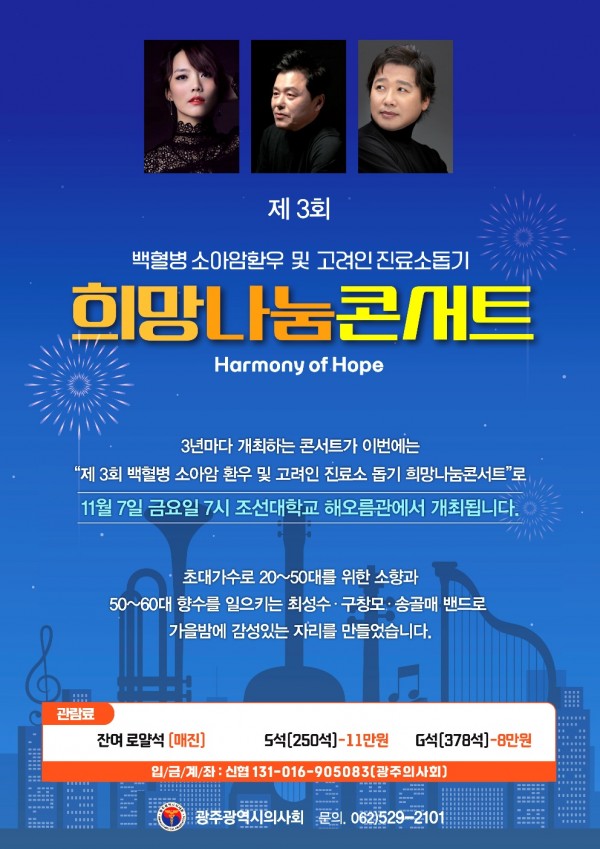 제3회 백혈병 소아암환우 및 고려인 진료소 돕기 희망나눔콘서트를 개최합니다